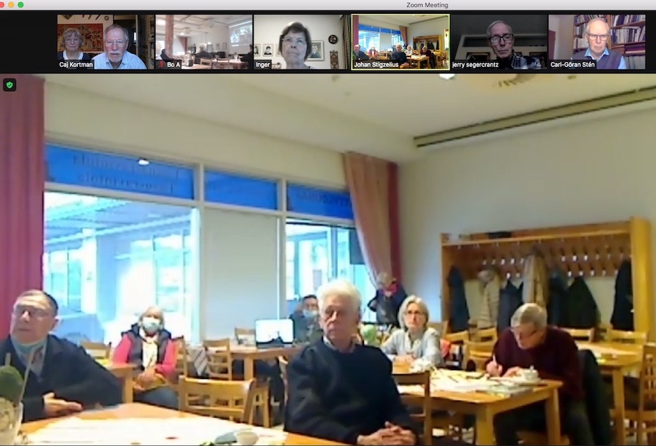 Lokalen visade sig vara ett lämpligt ställe för gemensam klubbträff med både fysiska deltagare och deltagare på distans.