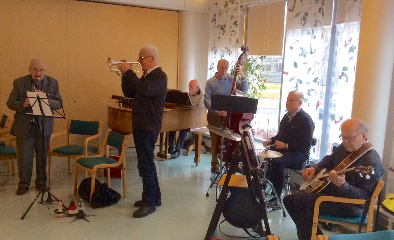 Swingit spelade 31.10.2016 swing- och jazzmusik: klarinett Rolf "Rolle" Lindström, kornett Cajus "Pricken" Lindroth, piano Hans Långbacka, bas Torbjörn "Turre" Forssell, trummor Bror M. Ekström, gitarr Markku Pietinen.