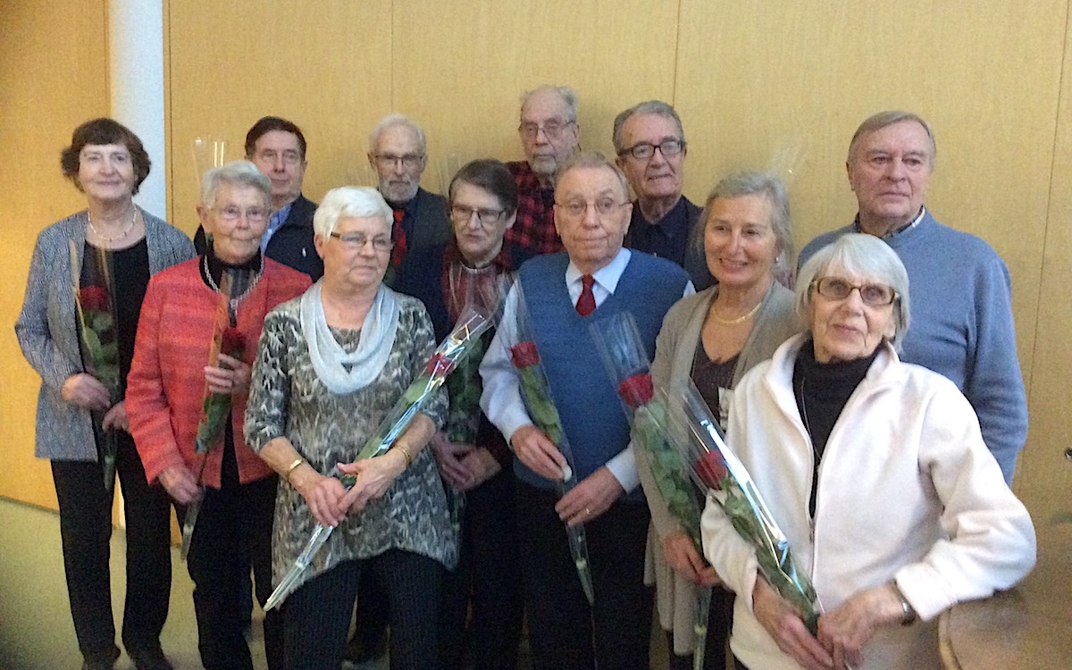 Årets jubilarer firades 21.11.2016. Från vänster: Veronica, Maj-Britt, Christer, Carita, Gunnar, Linnea, Henrik, Pehr-Erik, Harry, Peggy, Synnöve och Torbjörn.