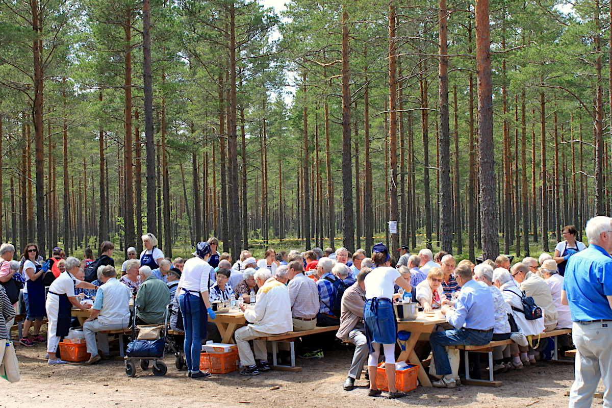 Olars pensionärsklubb såg tillsammans med några andra Esboklubbar 17.6.2017 pjäsen Okänd soldat i Harparskog.
