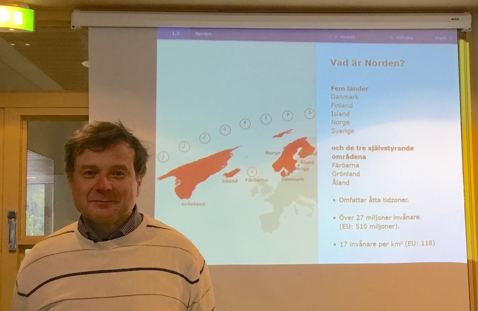 Heikki Pakarinen från Pohjola-Norden i Esbo berättade 8.4.2019 om ”Nordiskt samarbete”.