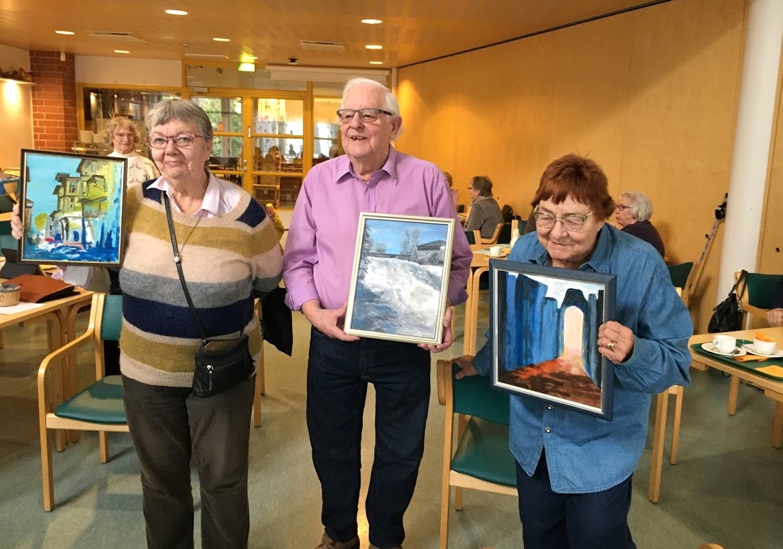 Ulla Stark, Urban Tydén och Ann-Christine Tydén visade sina målningar och berättade om dem 4.11.2019.