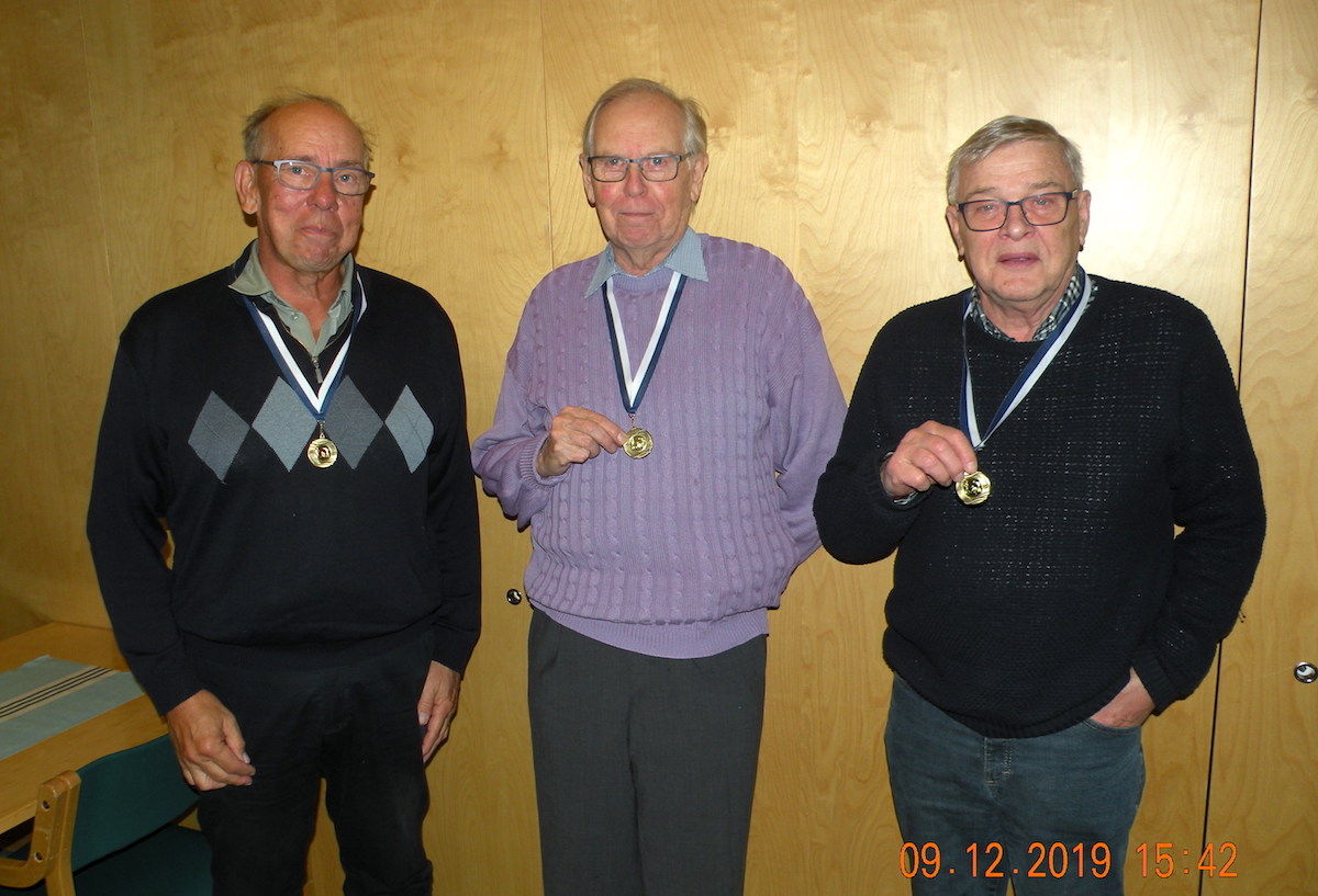 I ESP:s boccia-serie blev Olars lag 1 höstens 2019 vinnare. På foto Johan Stigzelius, Carl-Göran Stén och Rainer Richter. Med i laget var även Solveig Lindfors och Bo Andergård.