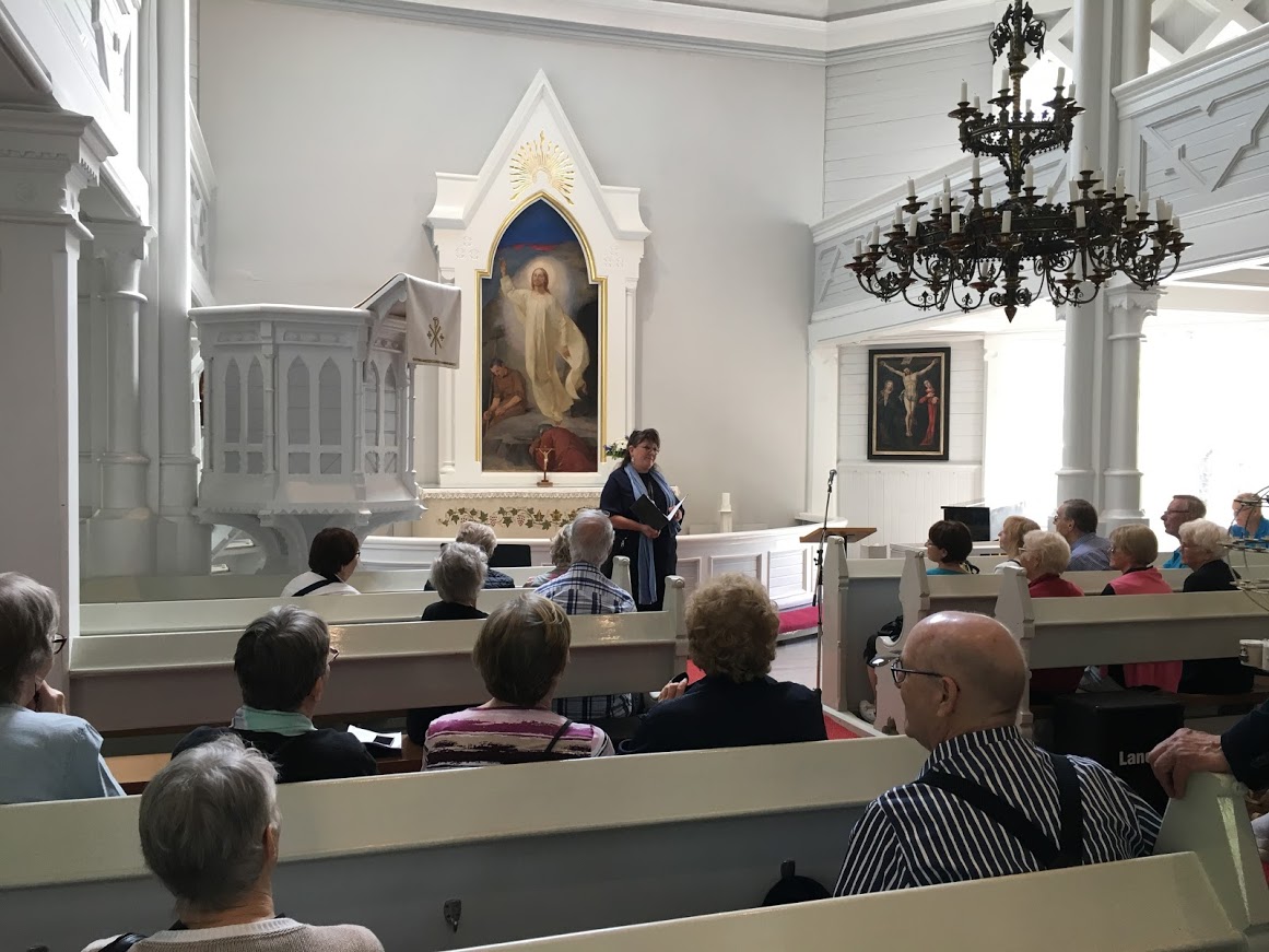 I kyrkan berättade vår guide Marjut Ståhls om Strömfors bruks historia. Altartavlan "Uppståndelsen" är målad 1898 av den unga konstnären Helene Schjerfbeck, den enda altartavla hon någonsin målade.