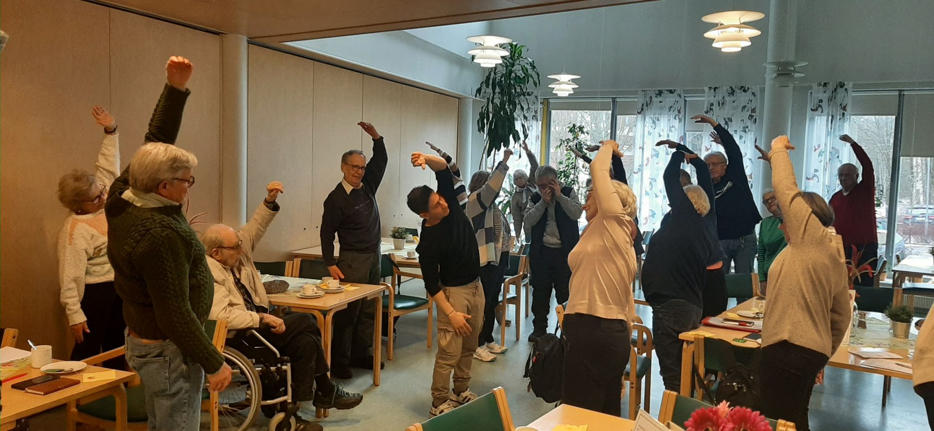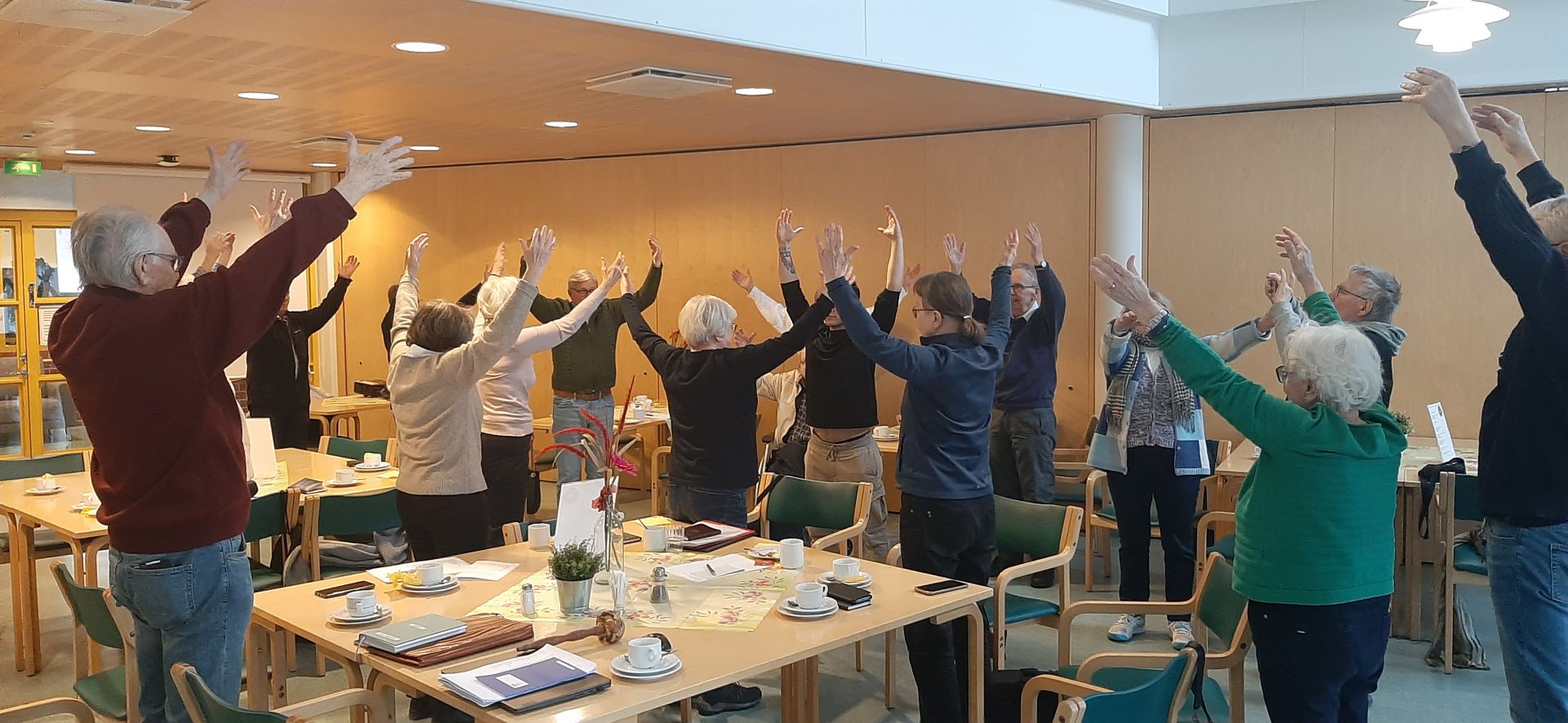 På måndagsträffen 22.04 var fysioterapeuten Filip Lunabba och talade och visade lämpliga gymnastikrörelser för att hålla kroppen vid god vigör.