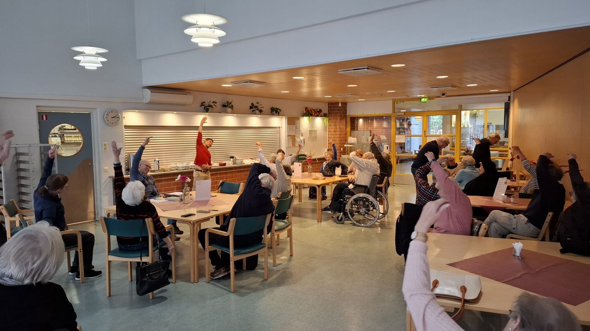 På måndagsträffen 4.11 var fysioterapeuten Fredrik Lunabba och drog en halvtimmes motionsgymnastik.