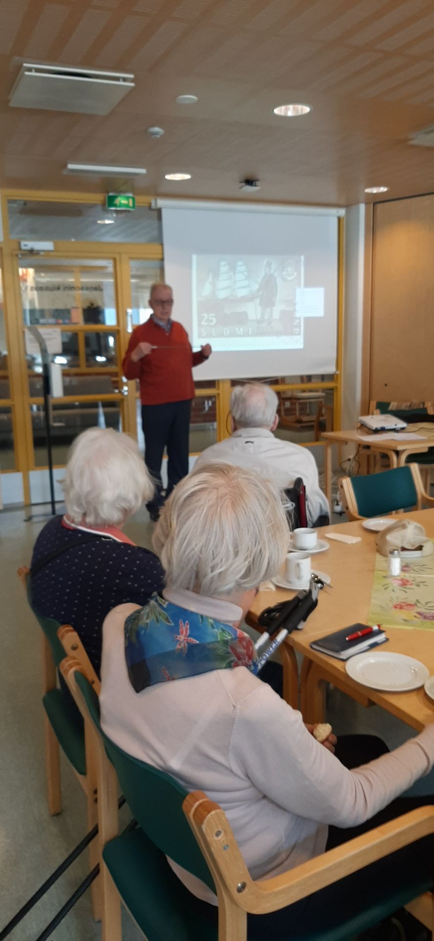 På klubbträffen 6.5 hade vi besök av Lasse Pawli. Han berättade om och visade bilder av frimeärken vilka hade som motiv kända män med anknytning till Uleåborg.