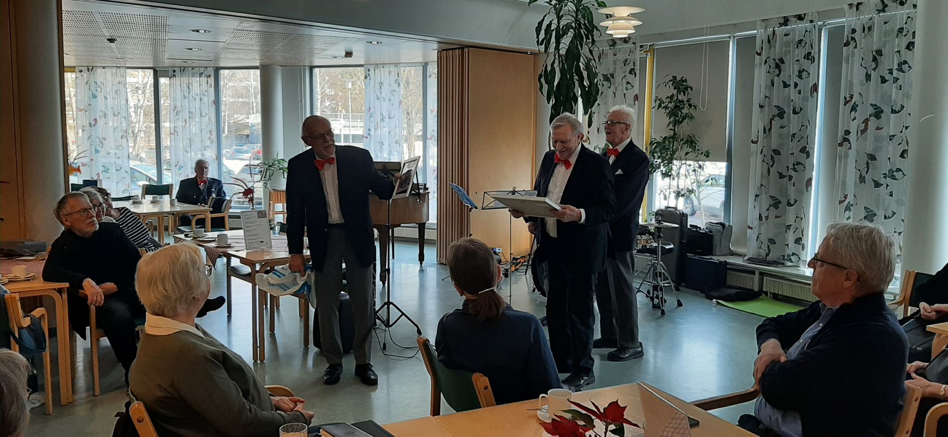 På måndagsträffen 11.3 spelade Swing It gammal fin jazzmusik för oss. Musiken är populär, för träffen besöktes av 34 medlemar.