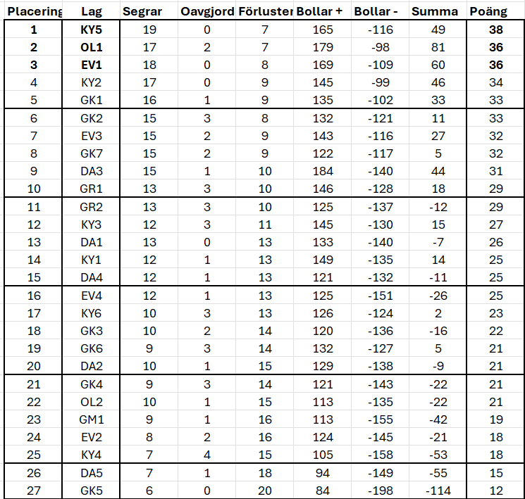 Efter spännande kamper tog Kyrkoby 5:ans lag hem segern före Olars 1 och Esboviken 1. Grattis till alla medaljörer och Tack till de funktionärer och reserver som medverkat till framgången.